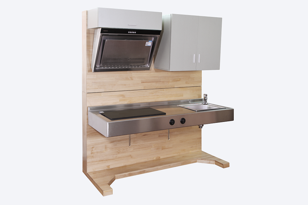 可升降電機2臺 煤氣灶1臺 水龍頭1套 可觸開關(guān)2個 儲物柜1個 電池爐1臺 升降范圍:300mm 雙電機控制 臺面高度可調(diào) 訓練殘疾者的生活自理能力 不銹鋼水槽,高級不銹鋼水龍頭,不銹鋼煤氣灶,一次成型大理石臺面,其他材料防火
